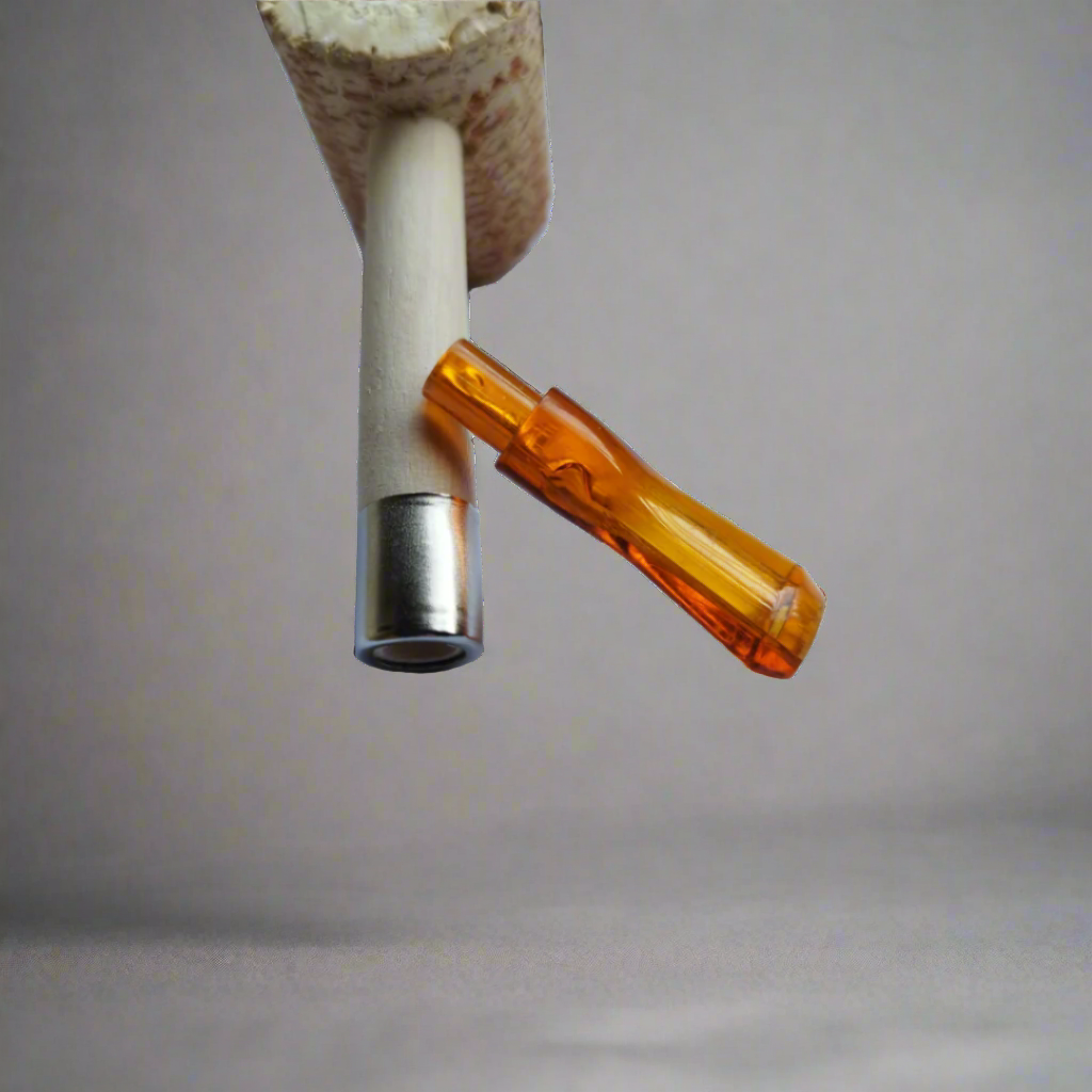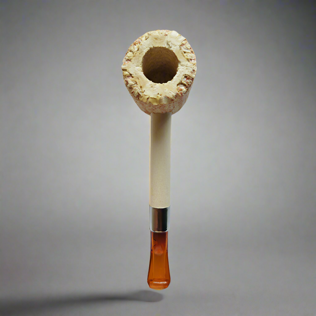 Pipa de alta calidad con terminado rustico, perfecta para una fumada de 20 minutos es un pipa recta con una boquilla corta de color ámbar acrílica.